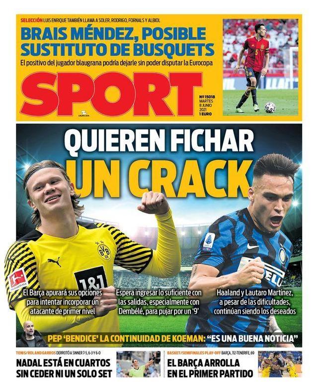 24直播网讯据《每日体育报》今日头版消息,巴萨想引进一名顶级前锋,劳塔罗和哈兰德仍然是他们的目标。