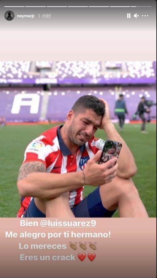而苏亚雷斯的巴萨前队友内马尔,也发文恭喜道: