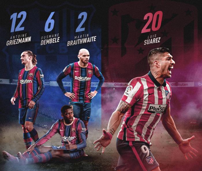 20: 20!苏亚雷斯吊打巴萨三前锋,马竞笑了,巴萨收获一千万