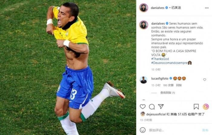 阿尔维斯在Ins中写道:“只有没有生命的人才会没有梦想。而我始终怀揣梦想,每一次入选国家队,都代表着荣誉和无与伦比的快乐,好孩子总是能回到家中。”