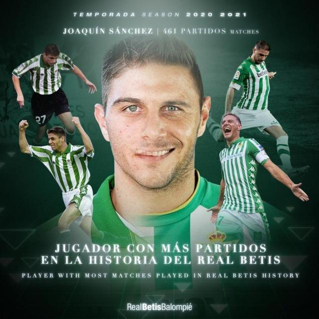 这是华金在各项赛事中第461次为贝蒂斯出场,成为贝蒂斯历史上出场次数最多的球员。华金本赛季出场25次,打进了2个进球并送出5次助攻。