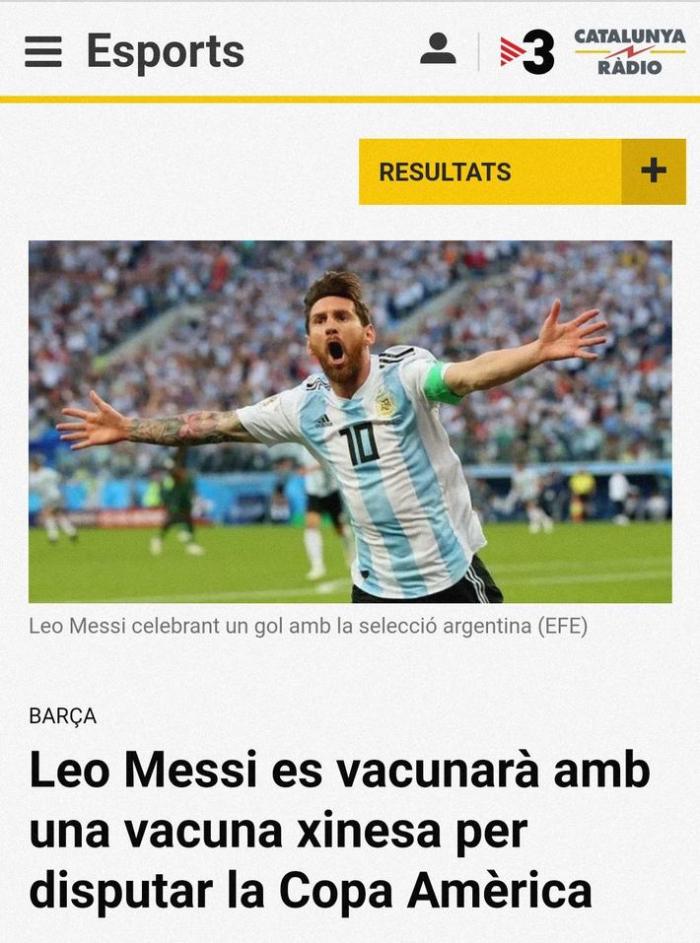 西媒: 备战美洲杯, 梅西将接种中国新冠疫苗