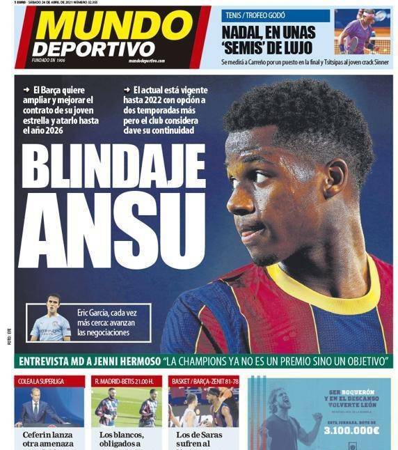 来源:24直播网04-24 15:3024直播网讯 北京时间4月24日讯:根据西班牙媒体每日体育报的消息,目前巴萨正在准备与队内小将法蒂再次进行续约。巴萨方面希望能够与法蒂续约到2026年,并且红蓝军团还希望趁着这次续约将球员的违约金进一步提升。