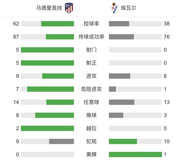 马德里竞技5-0埃瓦尔 科雷亚2分钟双响卡拉斯科造三球
