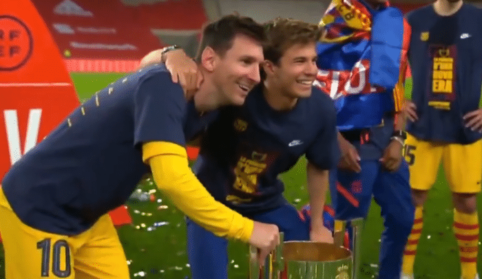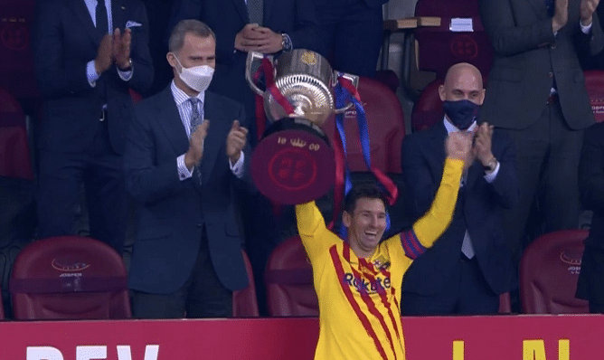 梅西在接受采访的时候没有谈到是否留队的话题,他表示球队在国王杯夺冠,对于冲击西甲联赛冠军也有很好的促进作用,同时梅西还表示作为队长第一次捧起这座奖杯有着特别的意义。