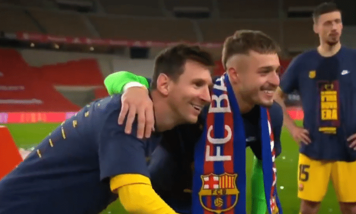 这些小将很多都是第一次在巴萨夺冠,所以能够和自己斩获的冠军奖杯与足坛传奇梅西一起合影,确实是非常好的机会,所以他们在赛后纷纷与梅西合影,相信这对于他们每个人都有不同的意义。