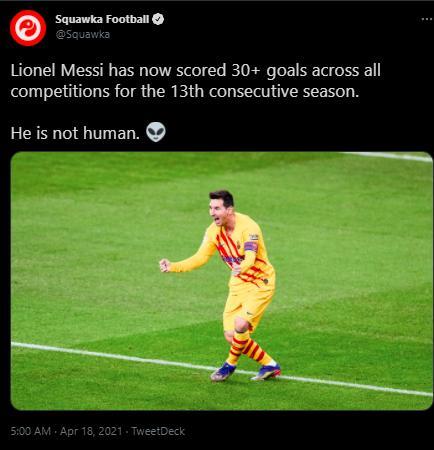 24直播网讯 北京时间今天凌晨的国王杯决赛中,巴萨对阵毕尔巴鄂竞技竞技,梅西完成了梅开二度,本赛季的进球数提升到了31粒。这已经是梅西连续13个赛季进球超过30个,五大联赛中也仅仅只有梅西完成了这一壮举。