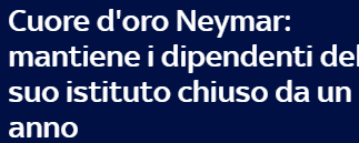 2020年4月,内马尔本人慷慨解囊,为了抗击疫情,他向联合国儿童基金会和一些名人开设的基金会捐赠了约90万欧元善款。
