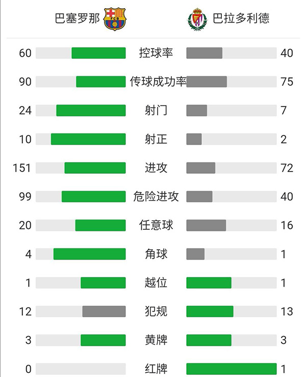 全场比赛结束,巴萨1-0战胜巴拉多利德。