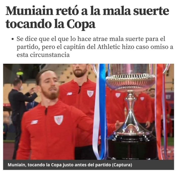 北京时间今天凌晨进行的19-20赛季西班牙国王杯决赛(推迟到本赛季进行)成了新的例证,毕尔巴鄂竞技队长穆尼亚因不信邪在比赛开始前触摸了奖杯,结果该队0-1负于皇家社会,痛失冠军。