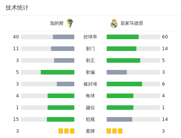 皇马3-0加的斯 罗德里戈2射1传贝林厄姆复出破门