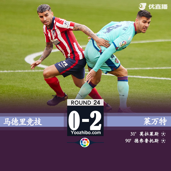 最终,马竞主场0-2不敌莱万特。
