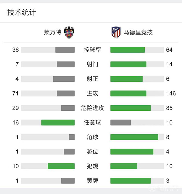 马德里竞技1-1莱万特 略伦特远射建功科雷亚失空门