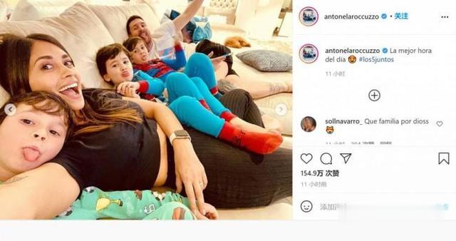 安东内拉晒图并写道:“一天最美好的时候,一家五口团聚。”