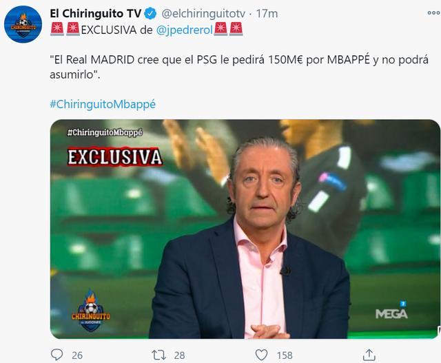 24直播网1月19日讯 据西班牙六台报道,姆巴佩将在6月份决定自己的未来,皇马有意引进他,但无法承担巴黎1.5亿欧元的要价。