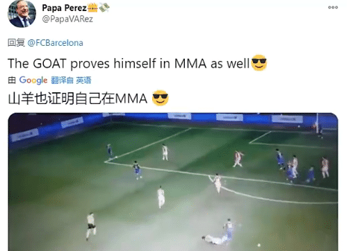 不过外界对于梅西这样的行为可并非都是这么宽容的,这其中就包括了皇马的球迷们,有皇马球迷在社交媒体上晒出了梅西染红的过程,同时配文:“历史最佳(GOAT)在MMA也能表现很好”嘲讽梅西的行为是暴力犯规。
