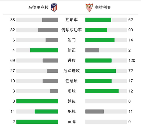 马竞2-0塞维少赛2场4分领跑 科雷亚破门萨乌尔建功