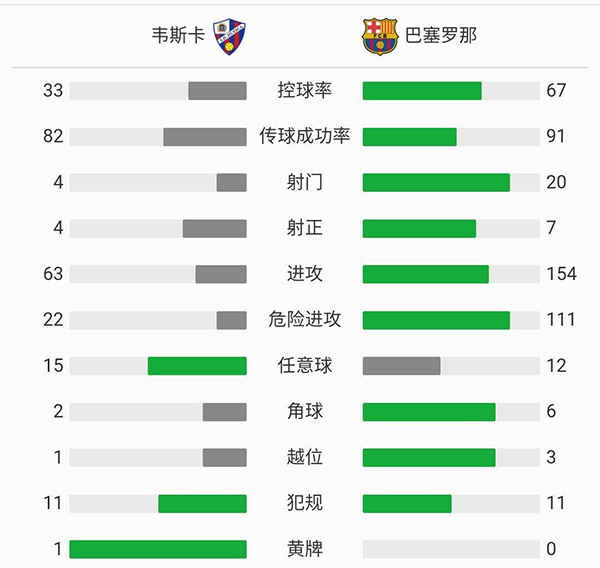 第26分钟,梅西45度角斜传到门前,弗兰基-德容抢点凌空垫射得手,韦斯卡0-1巴塞罗那!