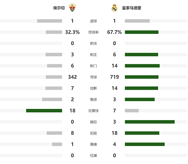 西甲简报:皇家马德里1-1埃尔切 卡瓦哈尔送点莫德里奇破门