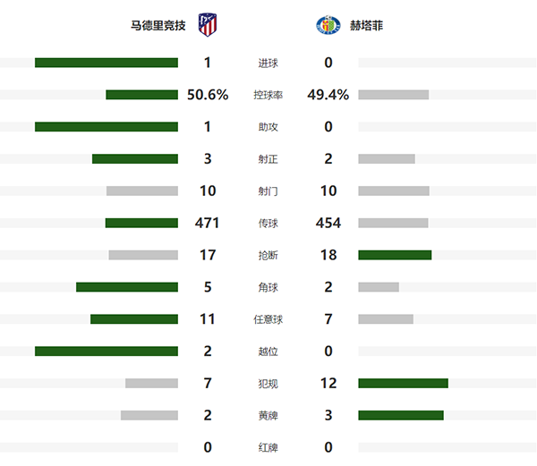 西甲简报:马德里竞技1-0赫塔费 卡拉斯科助攻苏牙雷斯破门
