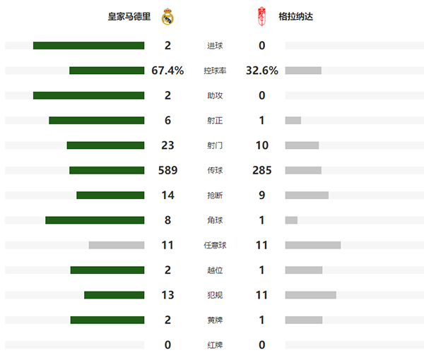 西甲简报:皇家马德里2-0格拉纳达 胖虎破门本泽马建功