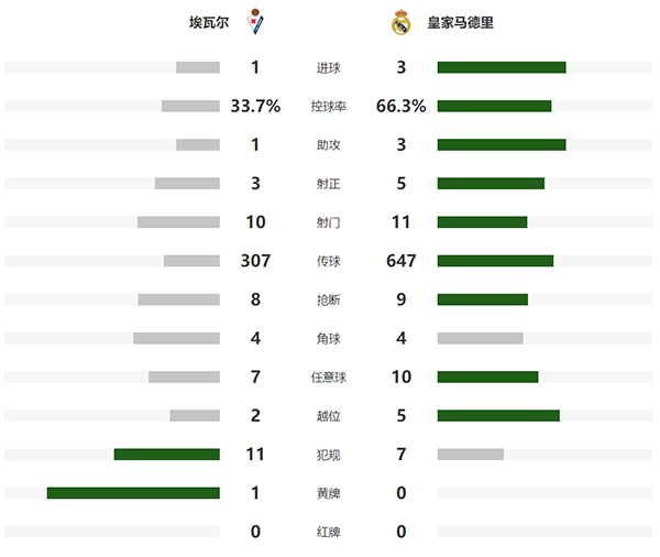 西甲简报:皇马客场3-1埃瓦尔 本泽马一射两传