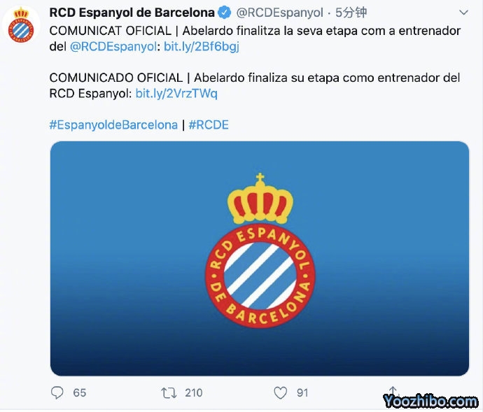官方公告中,西班牙人俱乐部表示,再次换帅是基于球队目前成绩做出的决定,球队希望能够继续留在西甲联赛。