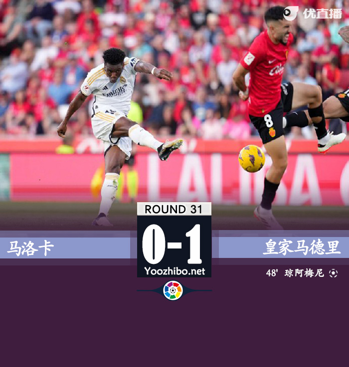皇马1-0马略卡暂以11分优势领跑 琼阿梅尼超级世界波