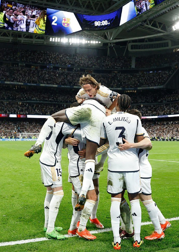 来源:24直播网04-22 15:1524直播网讯 在北京时间4月22日凌晨结束的西甲第32轮的“国家德比”中,领头羊皇马3-2绝杀了巴萨,在联赛还剩6轮情况下,领先优势扩大至11分,联赛夺冠几乎已经收入囊中。