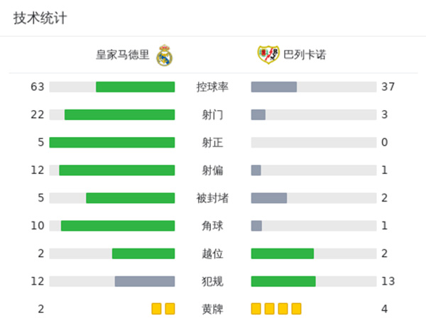 皇马0-0巴列卡诺 巴尔韦德失单刀皇马狂轰22脚无果