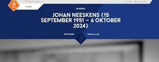 24直播网讯荷兰足协官方发布讣告,确认荷兰足坛名宿内斯肯斯去世,享年73岁。