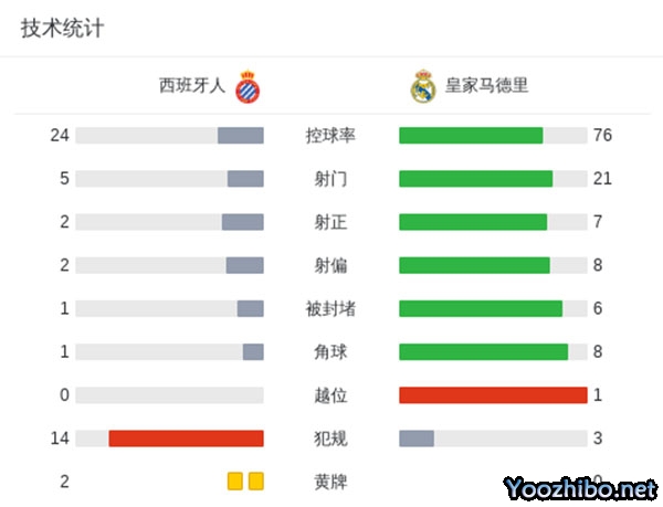 来源:24直播网02-02 06:35 24直播网讯 北京时间2月2日4:00,西甲第22轮,皇家马德里客场挑战西班牙人。上半场,吕迪格受伤被劳尔-阿森西奥换下,姆巴佩推人犯规在线,维尼修斯进球被吹,贝林厄姆兜射被门将没收。下半场,贝林厄姆远射被扑出,姆巴佩补射击中门框,巴尔韦德任意球攻门被封堵,维尼修斯远射打偏,罗德里戈外脚背捅射击中门框,随后卡洛斯-罗梅罗飞铲姆巴佩被黄牌警告,比赛尾声阶段,卡洛斯-罗梅罗接队友传中推射破门,最终,皇马客场0-1西班牙人,各项赛事五连胜遭终结。