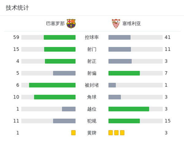 巴萨1-0塞维 亚马尔造拉莫斯乌龙拉菲尼亚伤退