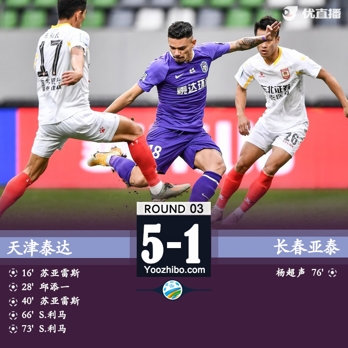 24直播网讯:北京时间12月1日15:00,足协杯展开第三轮较量,天津泰达迎战长春亚泰。苏亚雷斯打破僵局,第27分钟,邱添一头球破门得分,随后苏亚雷斯完成梅开二度,泰达3-0领先亚泰。