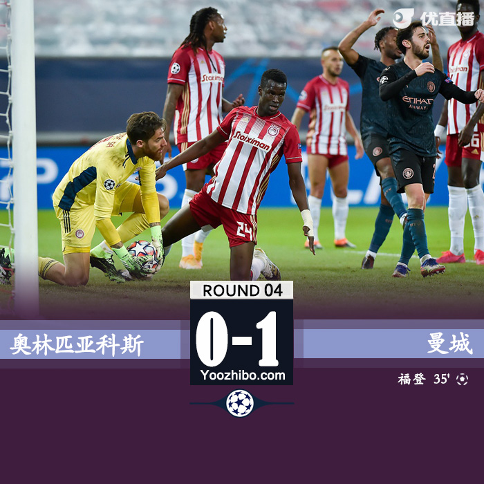 全场战罢,最终,曼城1-0奥林匹亚科斯。