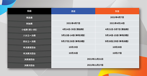 2021赛季亚冠联赛淘汰赛赛程表