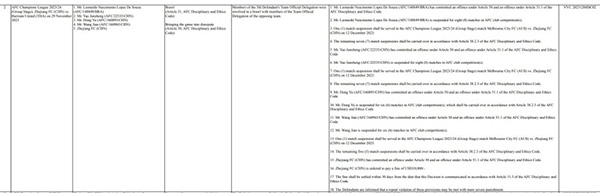 亚足联官宣重磅罚单:浙江5人禁赛!武里南2将挑衅却逃处罚惹争议