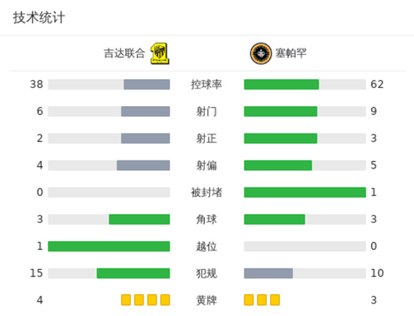 吉达联合首发:1-马约夫、5-路易斯-费利佩、26-赫加齐、12-扎卡里亚-豪萨维、13-山凯蒂、8-法比尼奥、16-加姆迪、77-阿姆里、17-萨哈菲、11-若塔、99-哈姆达拉