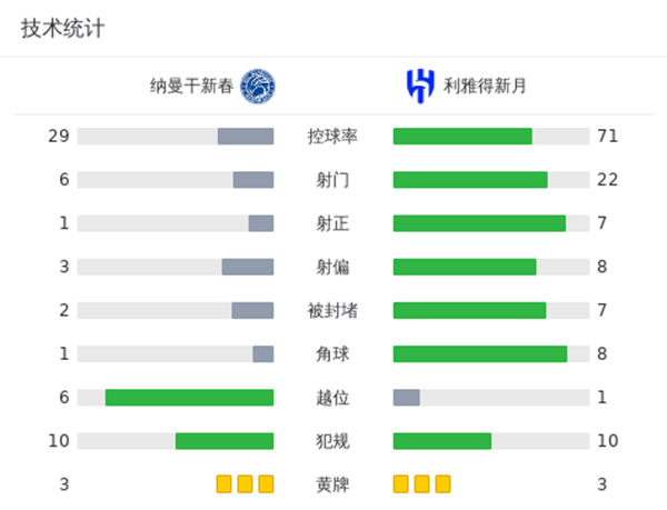 第66分钟,多萨里主罚点球再次被门将扑出,马尔科姆跟进补射破门,利雅得新月1-0纳曼干新春。