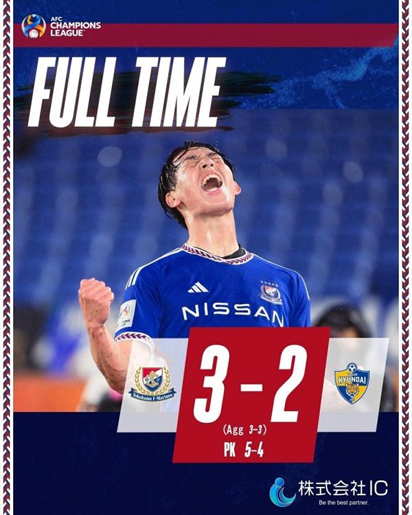 就在所有人都以为横滨水手会就此崩盘时,他们却在此后的比赛顶住了蔚山队的狂攻。加时赛,蔚山队曾打进决赛却越位在先。而在点球大战中,横滨水手在关键第5罚成功制胜,就这样总比分8-7淘汰强敌,跻身亚冠决赛。