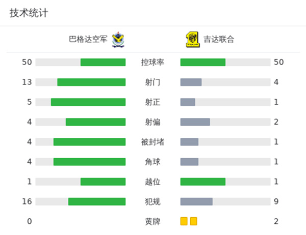 第43分钟,巴格达右路倒三角回传,阿里中路跟进推射破门,巴格达空军1-0吉达联合。