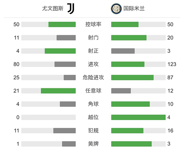 第58分钟,国米断球传到禁区,劳塔罗射门被出击的布冯封堵了。一分钟后,尤文快速进攻中拉比奥特分球,禁区左侧C罗的一脚抽射高出了。