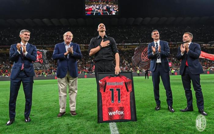 现场所有米兰球迷、马尔蒂尼等俱乐部高层、还有球队主帅皮奥利、米兰所有球员都出席了仪式。米兰队友站成两列,鼓掌欢迎伊布出场,而伊布登场后先是微笑与队友击掌,随后他深情向米兰球迷鞠躬致谢。