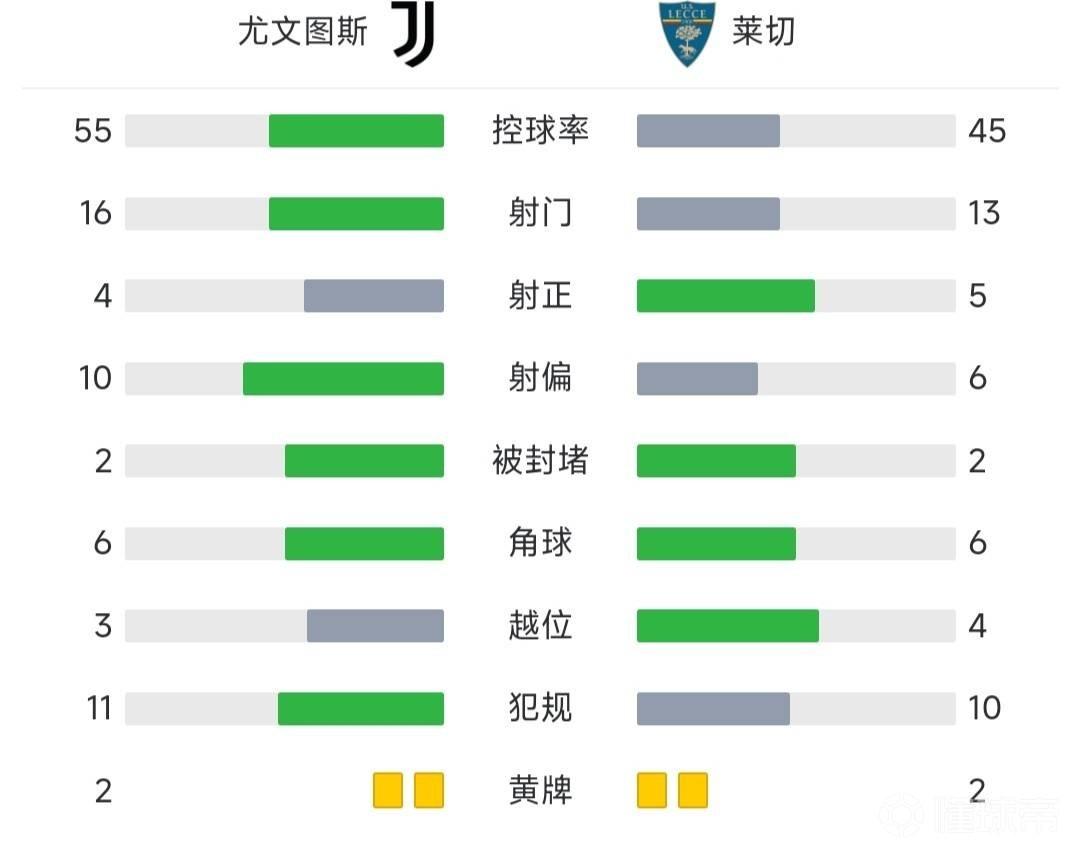 第37分钟,西塞主罚点球打进扳平比分,莱切1-1尤文图斯。