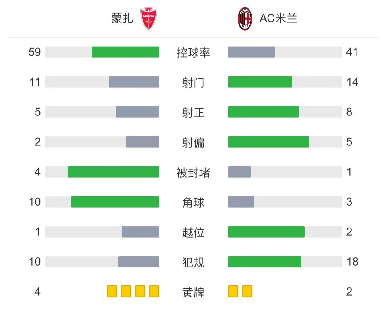全场比赛结束,最终AC米兰客场1-0战胜蒙扎。