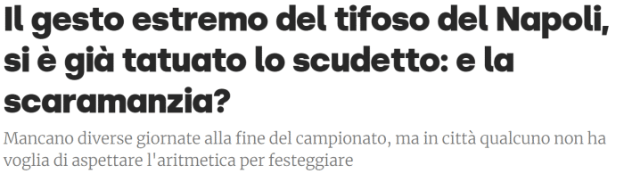 来源:24直播网02-14 14:1824直播网讯02月14日据意大利媒体《罗马体育报》报道,那不勒斯球迷已经将第三座意甲冠军的标志纹在了手臂上。