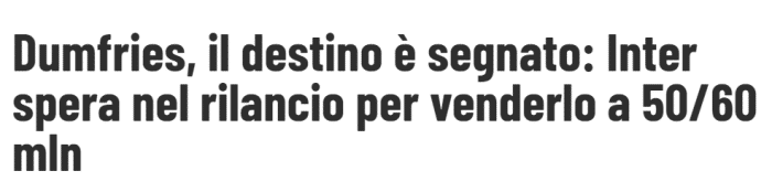 24直播网01月29日讯 据意大利媒体《米兰体育报》报道,国米目标5000-6000万欧出售邓弗里斯。