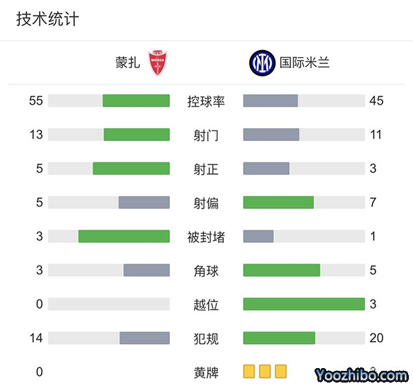 全场比赛结束,最终国米2-2蒙扎,三连胜遭终结。