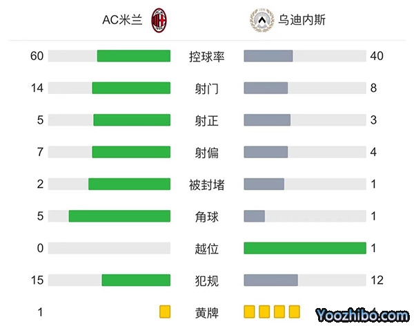 全场比赛结束,米兰4-2逆转乌迪内斯。