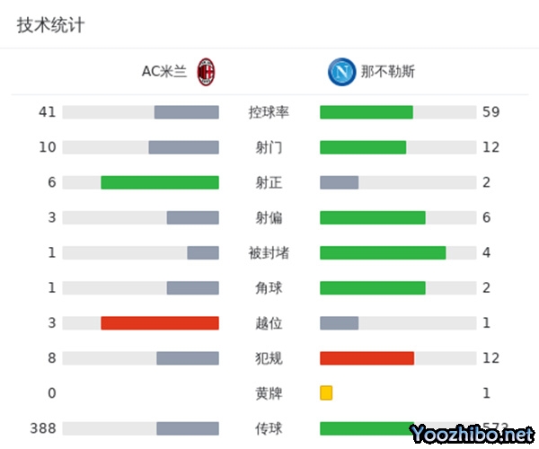 全场比赛结束,最终AC米兰1-0那不勒斯。